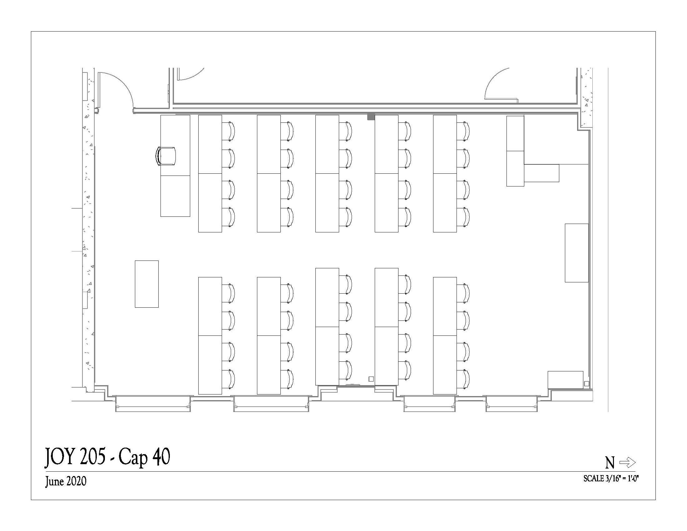 JOY 205 is a computer classroom in the Russell T. Joy building. It has a maximum capacity of 40 people. This space is subject to the quarterly scheduling timeline, which gives the highest scheduling priority to University courses. The space is scheduled by the Office of the Registrar.