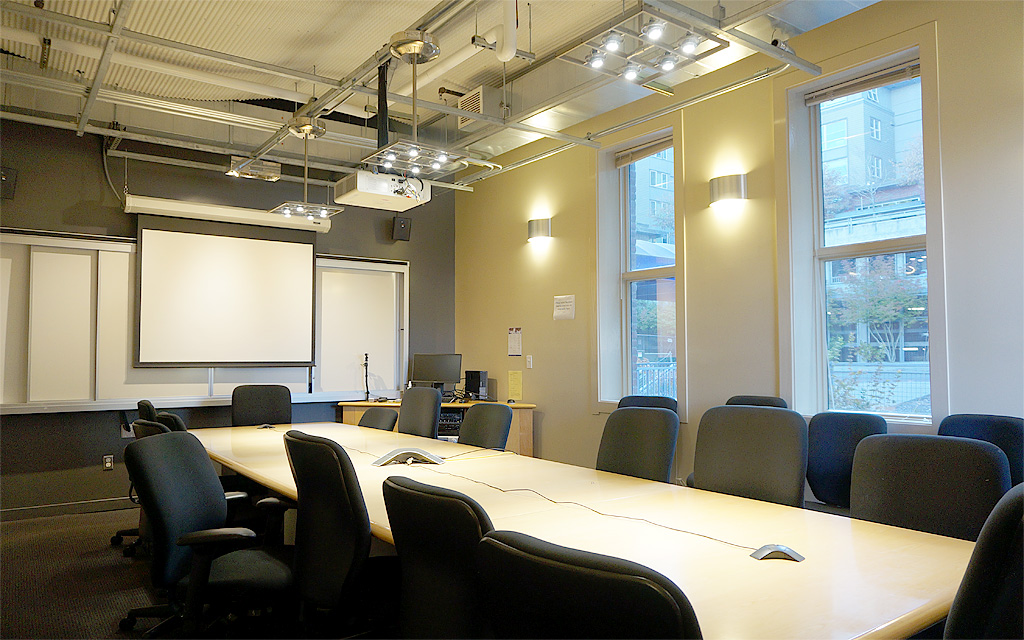 PNK 212 is a meeting room in the Pinkerton building. It has a maximum capacity of 16 people. This space may be self-reserved by UW Tacoma staff and faculty. Reservations made in this space are reviewed by the Office of the Registrar.