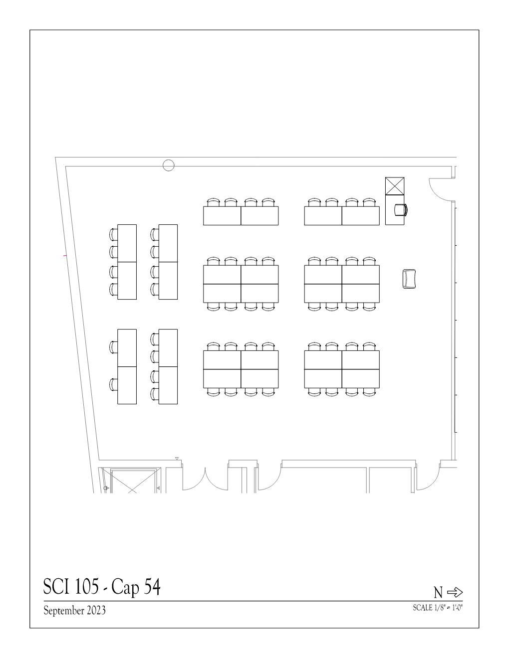 SCI 105 is a classroom in the Science building. It has a maximum capacity of 54 people. This space is subject to the quarterly scheduling timeline, which gives the highest scheduling priority to University courses. The space is scheduled by the Office of the Registrar.