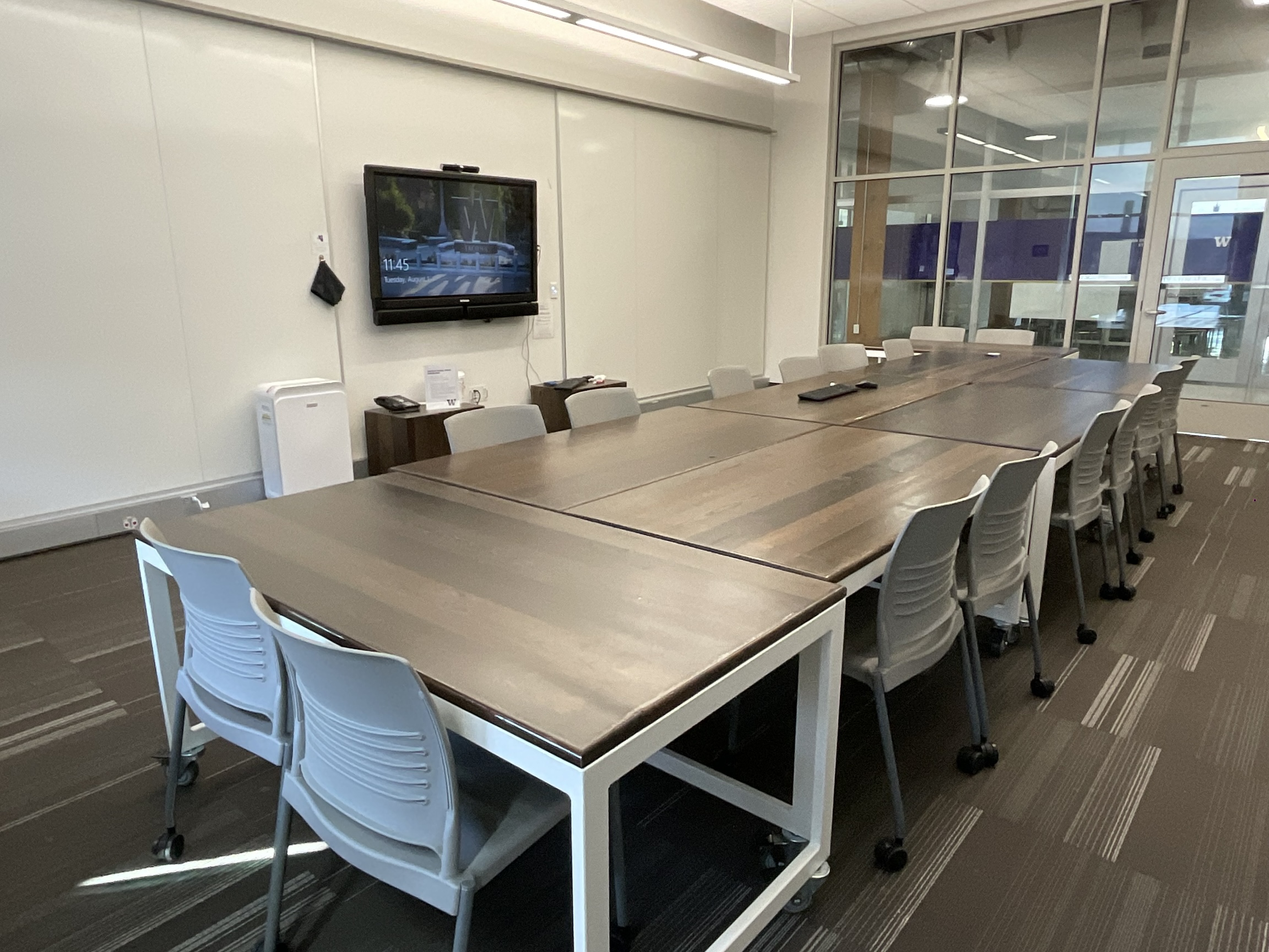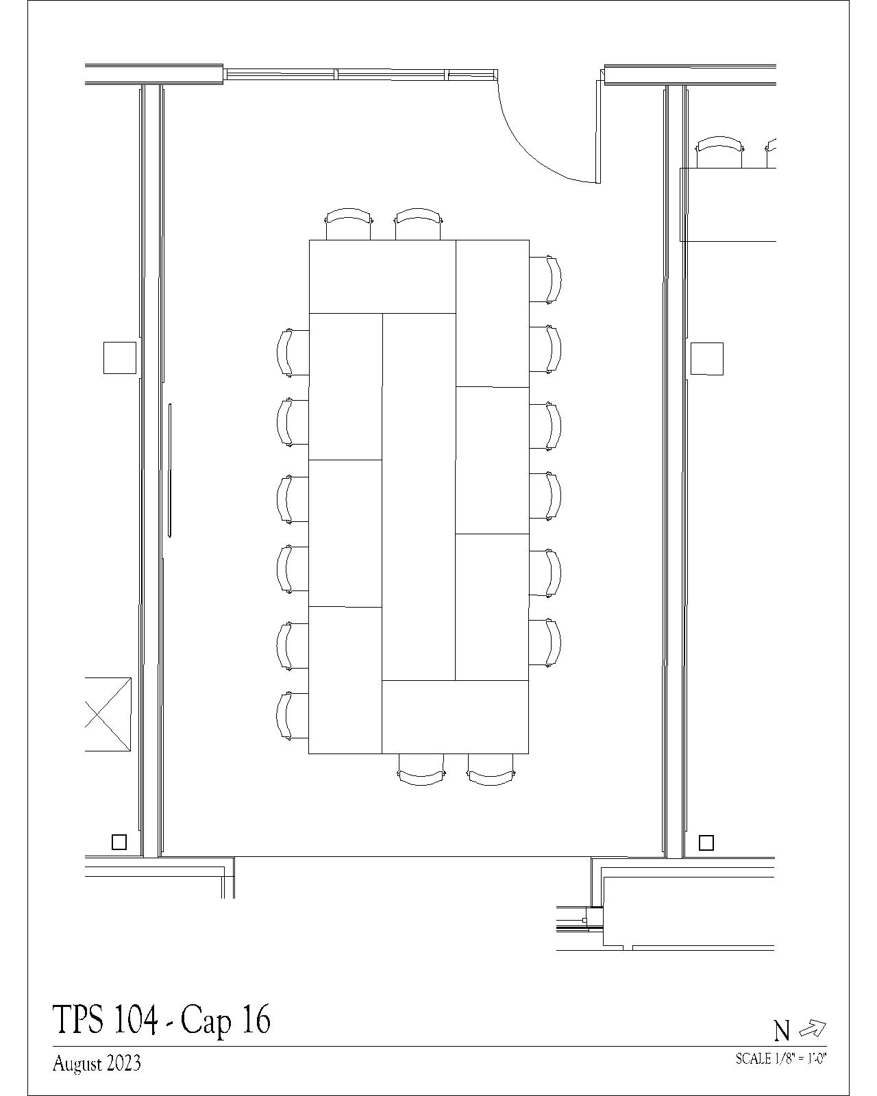 TPS 104 is a classroom in the Tacoma Paper & Stationery building. It has a maximum capacity of 16 people. This space is subject to the quarterly scheduling timeline, which gives the highest scheduling priority to University courses. The space is scheduled by the Office of the Registrar.