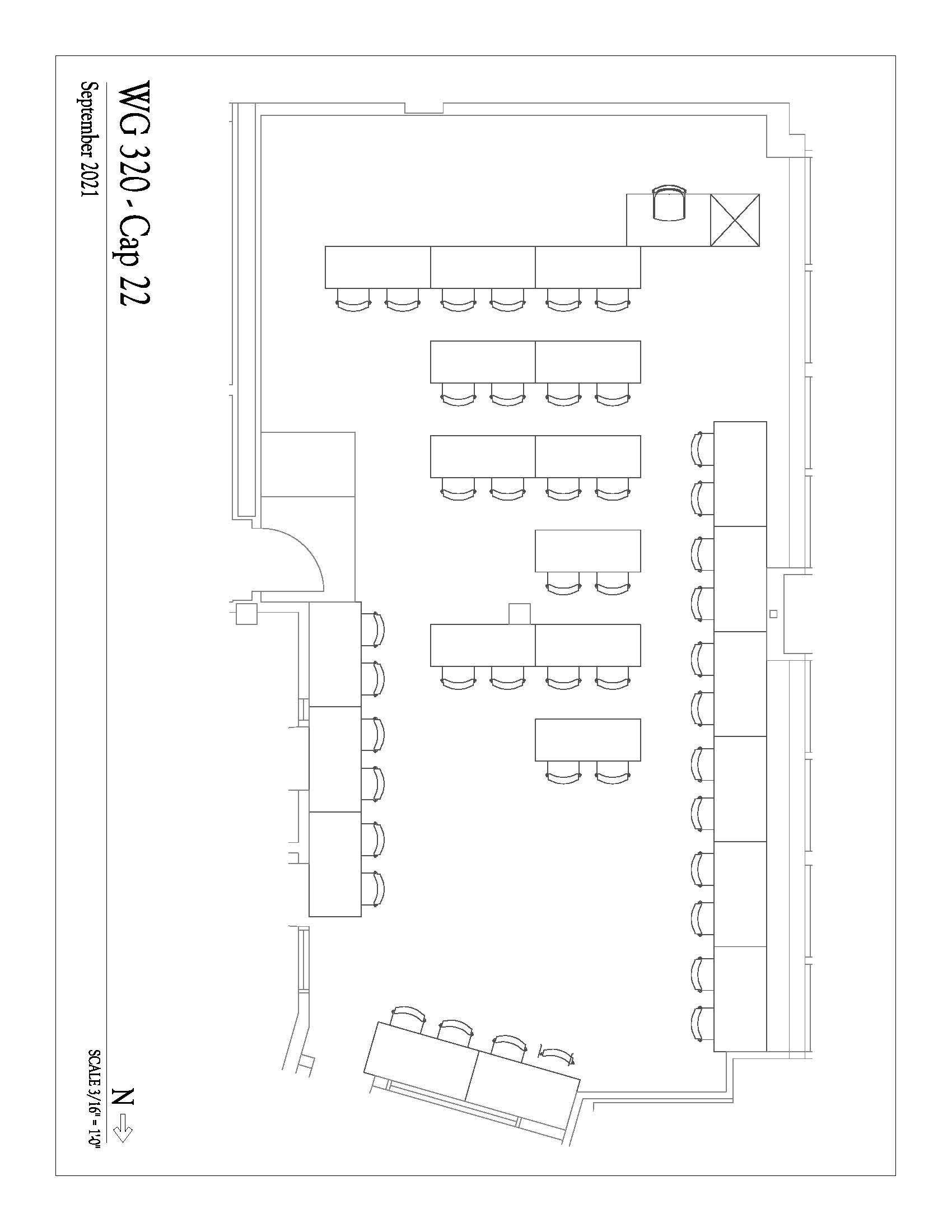 WG 320 is a computer classroom in the Walsh Gardner building. It has a maximum capacity of 22 people. This space is subject to the quarterly scheduling timeline, which gives the highest scheduling priority to University courses. The space is scheduled by the Office of the Registrar.