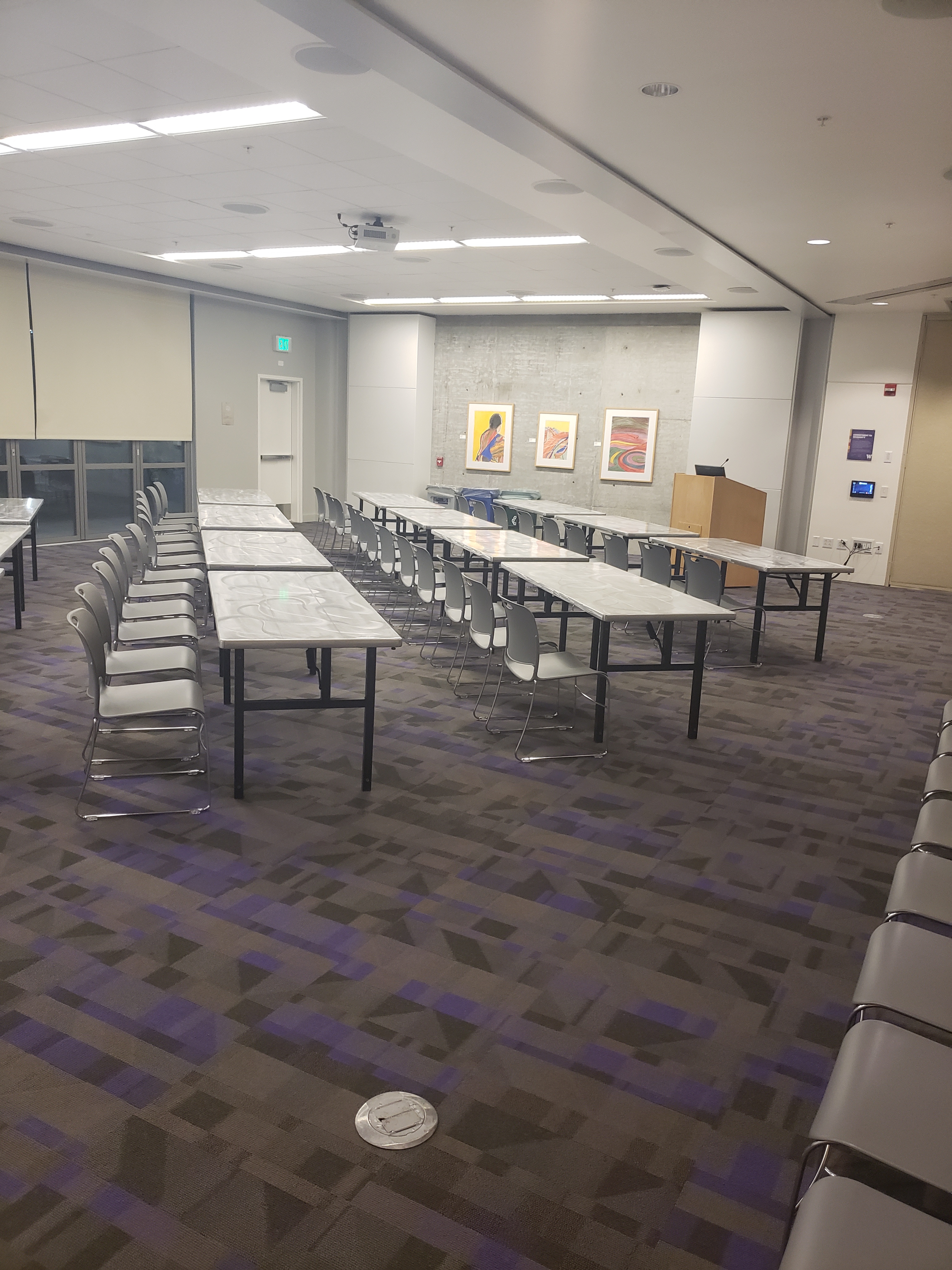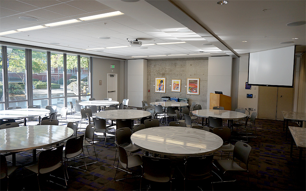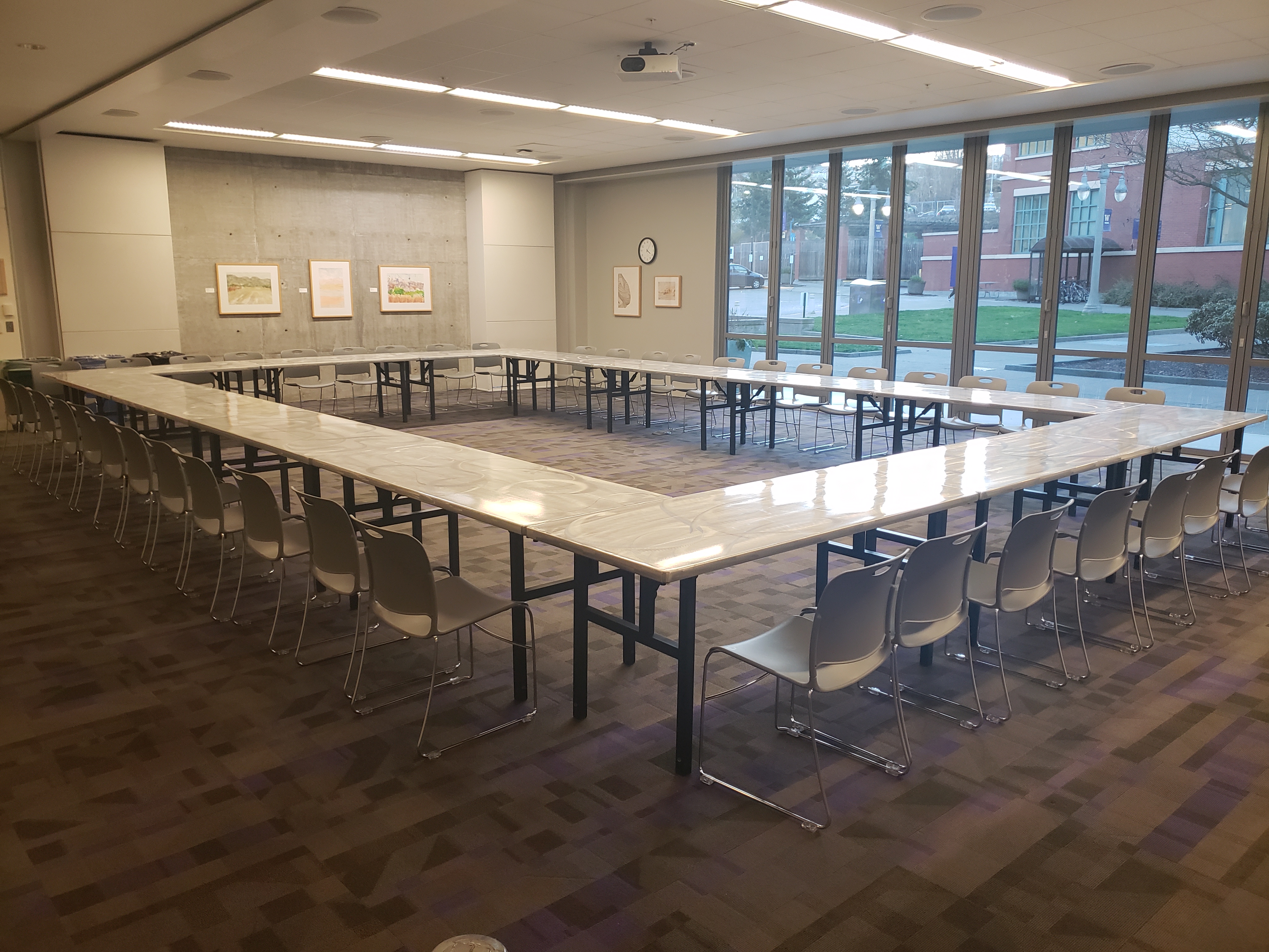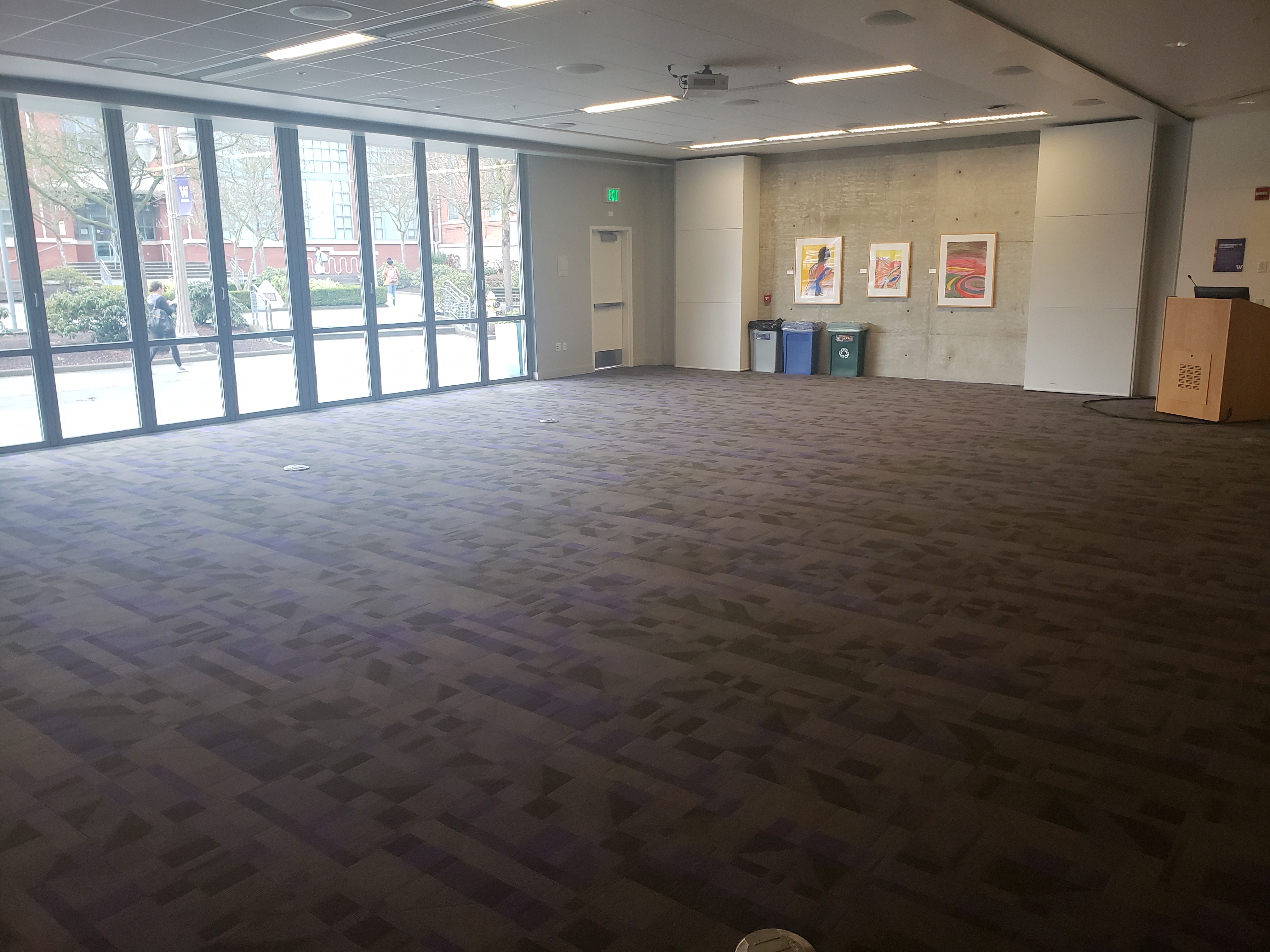The Jane Thompson Russell Student Commons is located in the William W. Philip Hall and offers a flexible event space that can accommodate lectures, meetings, performances, dinners or fairs. This space is the smaller portion of the main event space and features the sliding glass doors that give access to the Gilenwater Plaza. Should you want to book the main event space, please look at the MAR/JTR option or WPH All Four. Setups: For questions about your event setup, please reach out to: uwtsetup@uw.edu Attached Files: Remember to upload your diagram and your Event Management Safety Agreement Form (EMSA) in your 25Live Reservation using the "Attach File" button! EMSA Forms can be found here: https://www.tacoma.uw.edu/sites/default/files/sections/UUF/EMSA_91319.pdf